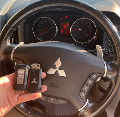 静岡市駿河区の自動車販売店様からのご依頼で、イモビライザー搭載車 三菱 デリカD5の鍵スマートキーが1つしか無いので、もう1本スマートキーを追加作成してほしいとのことで出張してきました。