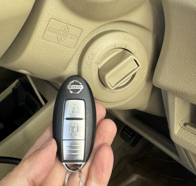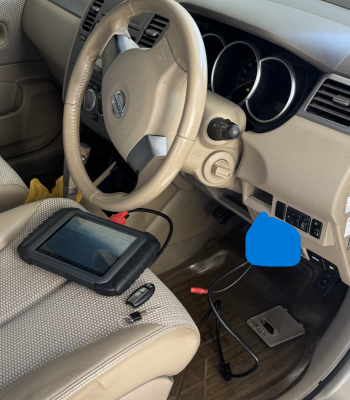 静岡県焼津市のお客様より、日産ティーダの鍵インテリジェントキー(スマートキー)を紛失してしまい車両を動かすことが出来ないので、新しくスマートキーを作成してほしいとのことで出張してきました。