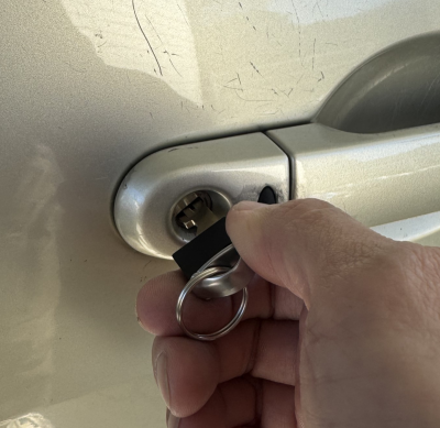ドアの鍵穴から情報を取り出し、作業車に車載してあるキーマシンに鍵をセットし車両に合わせてキーカットします。