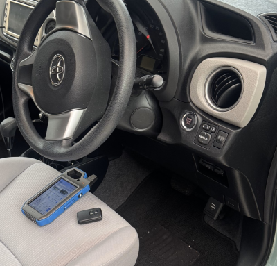 静岡県静岡市のお客様より、トヨタ ヴィッツの鍵スマートキーを紛失してしまい車両を動かすことが出来ないので、新しくスマートキーを作成してほしいとのことで出張してきました。